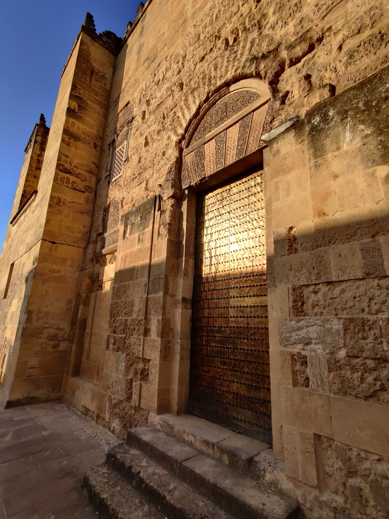 I found myself at the Mezquita-Cathedral of Córdoba quite by accident, not having a specific destination in mind. But I guess that as the centre of a cities religious life it would make sense for all roads to lead there eventually. I had the streets around it all to myself as I arrived, as well as much of the courtyard within. I’d booked a time to visit the space properly later on in the afternoon but I was so enthralled by the incredible light on the creamy yellow stone that I wanted to stay and wander about anyway for an initial appreciation. I got some wonderful images of light on stone, and shadow, and light reflected off of copper doors, appearing like gold in the early morning sun. The dense blue of the sky in the background was not only the perfect backdrop to the structures around me but the perfect contrast to the yellowy stones of the cathedral’s exterior.