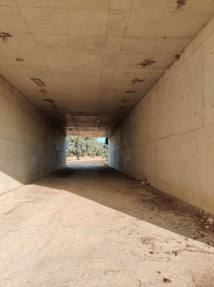 For the better part of the day the Via followed a minor highway that continued in the distance just on the periphery of my vision. Every now and then my path would cross backwards and forwards over it, and occasionally beneath it. It was strange to be so disconnected to the ‘real world’ beyond the Via, and to see cars and trucks zooming along the highway at speeds that would get me to Cáceres within a matter of minutes, rather than hours. There was something satisfying in that thought of disconnection though, and I really felt like I was the lucky one for not having the benefit of speed or comfort on my side. I was the lucky one to be under the morning sky with blistered feet and 10kg of essentials on my back. I was the lucky one to really see and feel the landscape around me as I went, rather than to simply glance at it occasionally as a driver, focussed on the road ahead and the traffic about them. I was the lucky one to feel the earth beneath my feet with each step I took, despite the mild discomfort that each step brought with it. It all added up – the sights and the sounds, and the smells – and made me feel so much more engaged with the act of travelling.