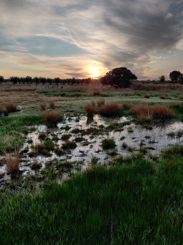 I left Alcuéscar at 7am and wandered quietly in the darkness until a dull gloom finally made its way over the landscape, and then sunlight itself. Only one moment required me to pull out my phone and turn on the torch when the path split in two and didn’t give me an obvious indication of which direction to choose. The town itself had disappeared quickly behind me, and pot-holed farm tracks had replaced the tarmac underfoot. The morning air was blissfully cool, and as the sun appeared on the horizon so too did lovely little wisps of mist that gathered just above the fields to either side of me. It was another fairy-tale start to another fairy-tale adventure.