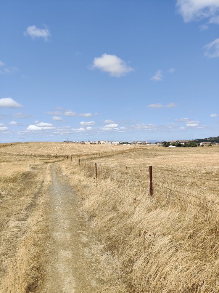 The final part of the day’s Via was tough once more. Not so much because I was anticipating my arrival out of tiredness, but more because my feet and shoes were up to their old tricks again and conspiring against my good cheer. I had anticipated such a pushback from my feet, given the heat and the fact that I was putting two forty kilometre days side-by-side. So for that reason I had been very diligent that day and stopped every hour on the hour to stretch, sit, change my socks, refuel etc. It might seem like an obvious tactic to many, and one that I should have been practicing over the previous nine days, but the reality is that I’m a charger, with little patience for loitering. I push straight on through and don’t stop until a thing done… Such a tendency has very few merits when it comes to walking, and a lot of potential downsides, but it had been my approach nonetheless, which I was now trying to redress. But even with the frequent stops and rests my feet had still managed to remind me that they were feeling aggrieved.