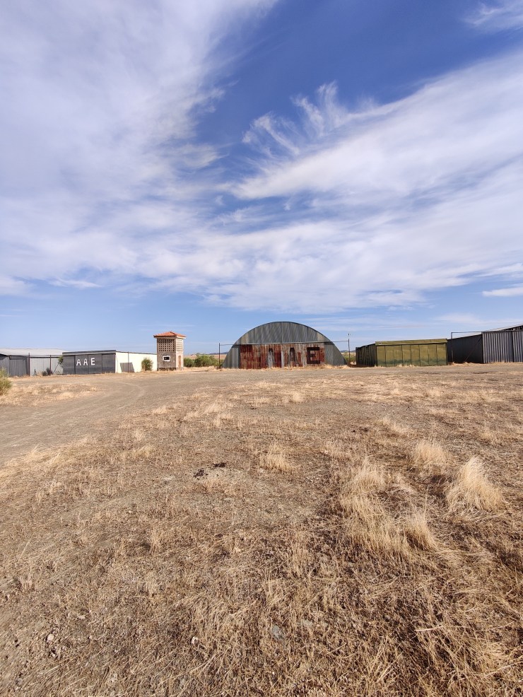 The satisfaction of taking the slow road stayed with me as my path led to an old, seemingly abandoned, aerodrome. It appeared before me out of nowhere, on a perfectly flat terrain of nothingness, nondescript as an airfield except for a line of old tin sheds off in the distance built along its periphery. The structures creaked and rattled in the occasional breeze and suggested that once upon a time their purpose was much sought after. But now the whole enterprise seemed abandoned, and the tin sheds carried with them a bunch of Hollywood notions such as illicit narcotics drop-offs and drug deals with Mexican cartels gone wrong. If tumbleweed had rolled across the landing strip in front of me I wouldn’t have been the least bit surprised. Nor if I’d heard a gunshot from somewhere deep within one of the sheds.