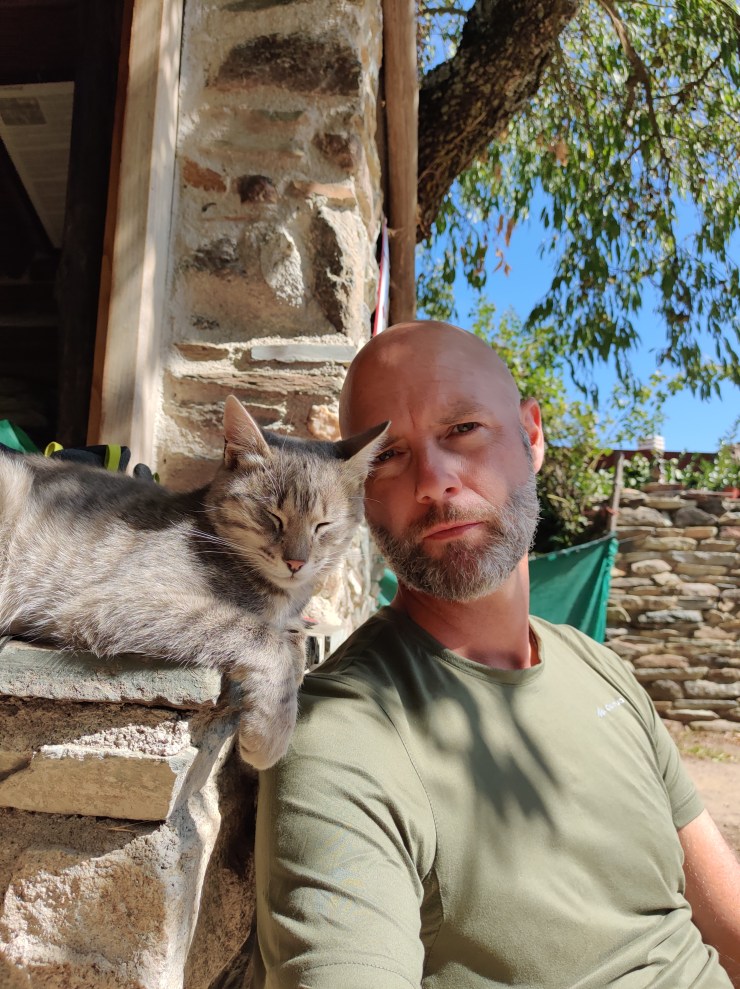 I found the albergue easily enough on the other side of the village, but it was unattended as I arrived and so I rested myself in the sun outside the front door. I pondered my Plan B, to continue on to San Pedro de Rozados, when a small feline companion made himself known to me. We chatted for a bit and shared cuddles, and our conversation must have drawn the attention of one of the two volunteers who were working at the albergue. He was young, and he greeted me warmly as I stood to shake his hand. We fumbled with the gesture, realising mid-shake that it was not the done thing any longer, such was our new Covid reality. He spoke to me in English with a confidence that I had not experienced in quite a while and we chatted about how quiet the season had been, and how we both hoped for a quick end to the sad state of global affairs. He wore a pair of work boots, short shorts, a loose vest top and a bowl-styled haircut that suggested he had cut it himself, or someone equally less practiced. I had to laugh at his incongruous stylings because if he’d stepped out onto the very trendy streets of Shoreditch in London he wouldn’t have looked out of place in the slightest. In fact, he would have been incredibly on-trend.