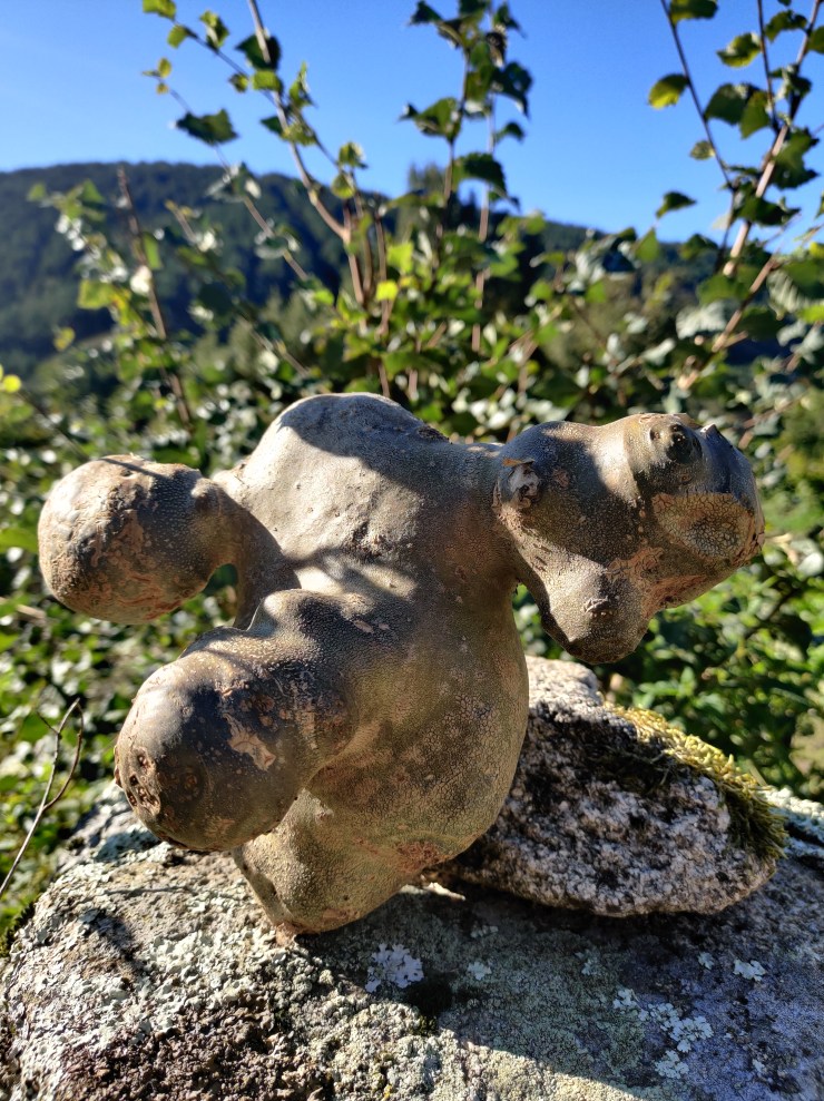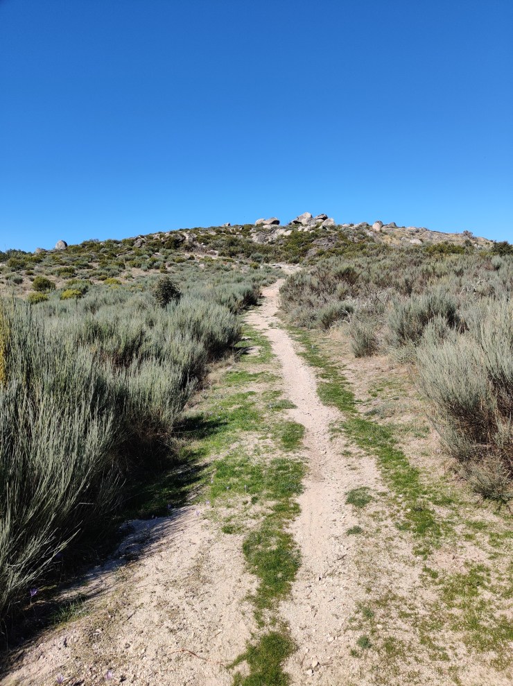And then, in an instant, the landscape changed once more, and I was confronted by huge boulders that were dotted about on a dry and arid landscape covered in coarse scrub. I had found myself in another setting for a dystopian science fiction film, only five-hundred metres on from what had been the setting for a Sleeping Beauty or a Little Red Riding Hood storyline. It was an amazing (and unlikely) transition, and the sudden contrast gave me such a buzz. To really hammer home the fantastical elements a little old lady appeared from nowhere before me, crossing a small stream on a rudimentary stone bride. She hobbled with haste with a long stick propelling her somewhat along the path. She was short and squat, with a wild mop of wiry grey hair, and if I had really wanted to I might have believed that she had freshly departed her gingerbread house after feasting on the corpses of Hansel and Gretel.