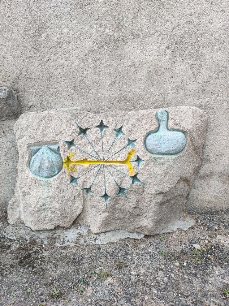 And so we began our journey anew, through vibrant green farmland that played host to herd after herd of healthy looking cattle. Streams trickled confidently across the lush landscape and a new style of signpost appeared along our path to reinforce the idea that we were now in Galicia. Gone were the occasional spray painted arrows on rocks and pylons. And in their place (at every turn it seemed) were solid stone half-obelisks decorated with St James’ yellow scallop shell offset against a vibrant blue tile. And just for giggles each half-obelisk included a small plaque telling Peregrinos how many kilometres we had left before our final destination of Santiago de Compostela.