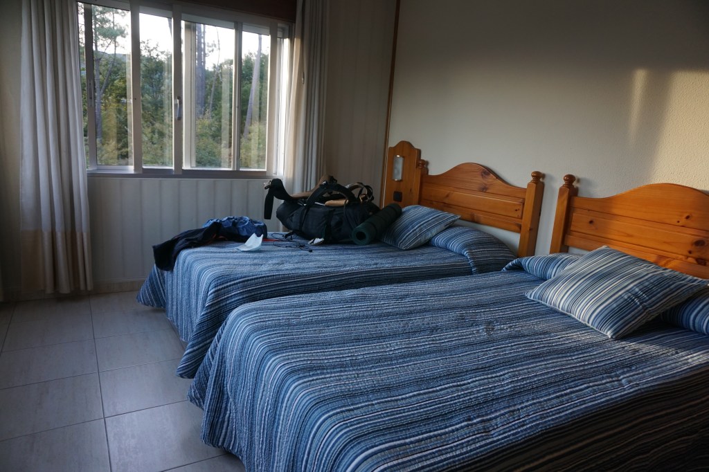 Daan eventually found a hotel about a kilometre off the Camino that was still open for guests, just beyond Arenteiro, and so he booked us a room each by phone as we walked. The sun was particularly low in the sky by the time we finally reached the hotel, which existed in the world all on its own, except for a small petrol station across the road from it. It seemed to have been forgotten by commuters, tucked away as it was on a now forgotten stretch of tarmac that had been superseded by a large motorway some 500m away.