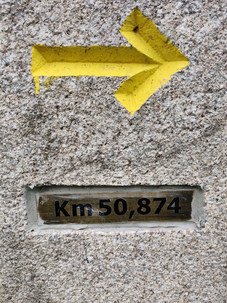 We eventually reached a small milestone of sorts in the form of a marker announcing that we had another fifty kilometres to go until Santiago de Compostela. A mere fifty kilometres! Such a trifling distance remaining seemed almost impossible for me to comprehend when I considered those first steps back in Seville with a grand total of one thousand kilometres ahead of me. The fact that nine hundred and fifty kilometres had already been walked still felt somewhat abstract to me. Almost as if it hadn’t been me who’d left from the Catedral de Sevilla all those weeks before. And in some ways it really was a different person who’d ended up just fifty kilometres from Santiago de Compostela. A different person both physically and mentally.