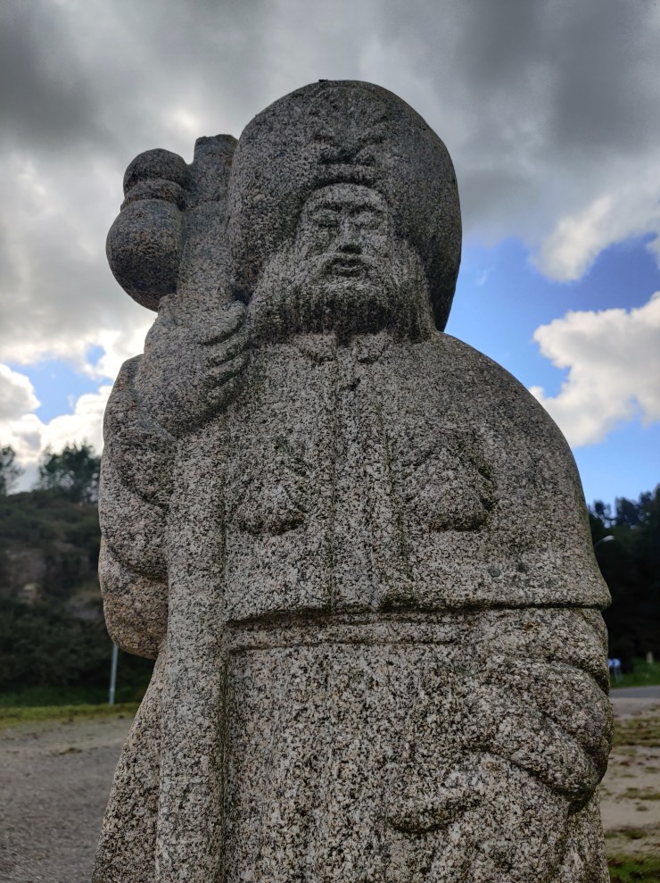 I paused at a small church to undress a little and rest my feet for a while. More specifically, rest my left shin, which was still playing up long after its initial grumble back in Ourense. It was the first time during my six weeks of travelling that I’d succumbed to the aches and pains of my body and given it a decent respite by way of a rest. I pulled my shoes and socks off and let them breathe for half an hour or so while I reclined on a park bench beneath a stone statue of St James. He watched over me as I closed my eyes and took in the sounds around me. I may, or may not have, dozed for a moment of two, but eventually I realised my time was up and begrudgingly reapplied my socks and shoes to continue on my way with my wayward shin feeling no calmer with each step.