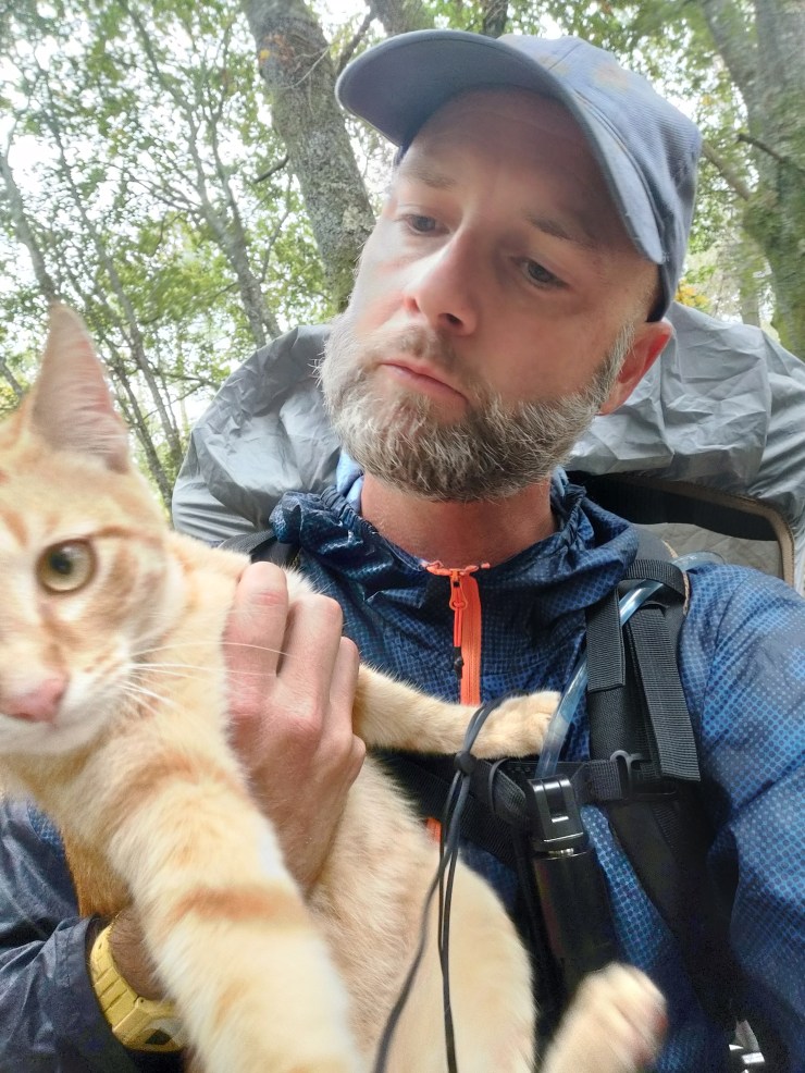 We finally made our way off the main road and back into a more serene setting, alternating once more between forest and farmland. At one point we even adopted a fellow peregrino in the form of a beautiful ginger cat. Well, a kitten really. It appeared out of nowhere in the middle of the woods, crying for attention and making a hell of a fuss of the two of us. The mystery of where it had come from confounded us, as we really were in the middle of nowhere, with no farmland, farm buildings or houses to be seen. We made the mistake of stopping and crouching down to show it some affection affection, which the cat then took as an invitation to climb up into my arms for even more engagement. All the while it meowed and meowed, and meowed some more.